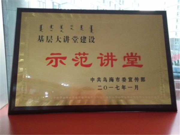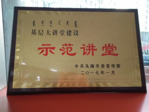 2017年1月18日,滨河街道白楼社区在乌海市“三带三创”工作推进会中被评为“基层大讲堂建设示范讲堂”荣誉称号。