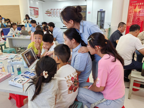 “夸夸我的家乡绘画”环节中,孩子们拿起画笔,以稚嫩却真挚的笔触勾勒家乡乌海的风貌——或是奔腾的黄河、或是熟悉的街道。志愿者在旁耐心引导,鼓励孩子们将对家乡的热爱融入色彩与线条。创作完成后,全体人员手持画作合影,镜头前,孩子们齐声高喊“乌海”,清亮的声音中满是对家乡的自豪与热爱,瞬间点燃了现场的热烈氛围。
